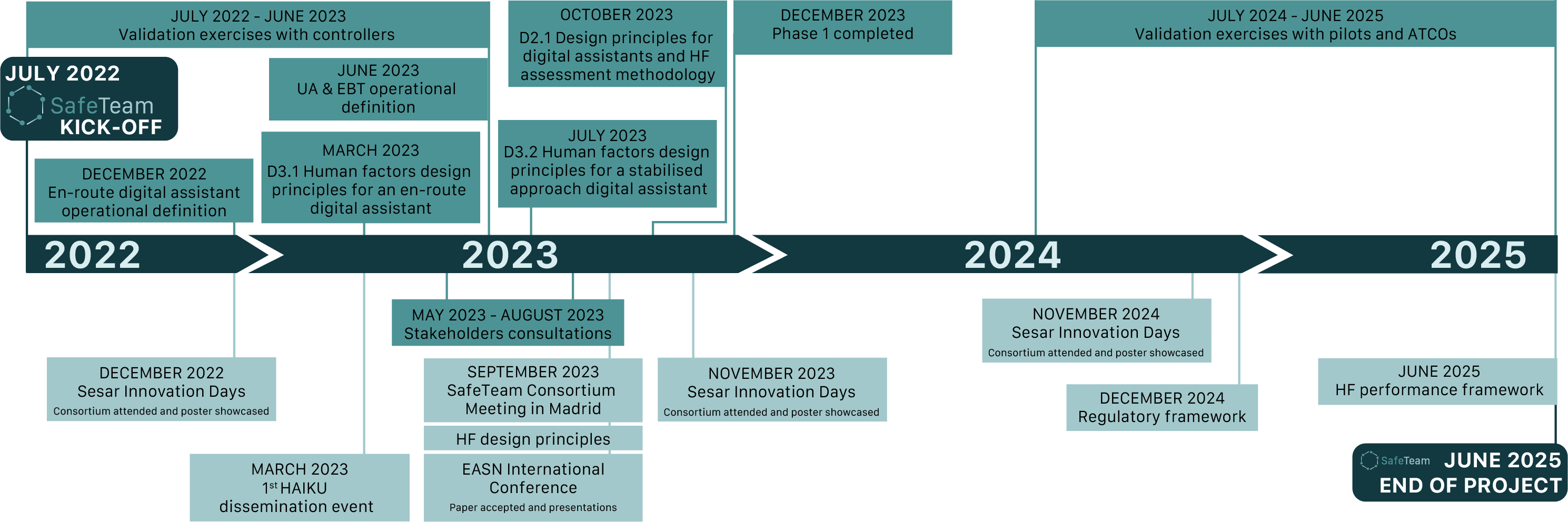 SafeTeam will incorporate human factors expertise according to the targeted level of autonomy and corresponding controller-machine tasks distribution. The safety-critical level will be considered in the definition of the use case and its implementation. The validation exercises will monitor how the information provided is ingested by the controller as well as its impact on the workload, situational awareness, and other safety indicators.